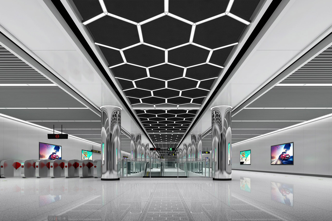 全线整体风格:厚重、简约、时尚。强调城市文化精神与地铁地下空间的联系,突出“创新天津”、“蓬勃天津”、“繁华天津”的定位及理念。